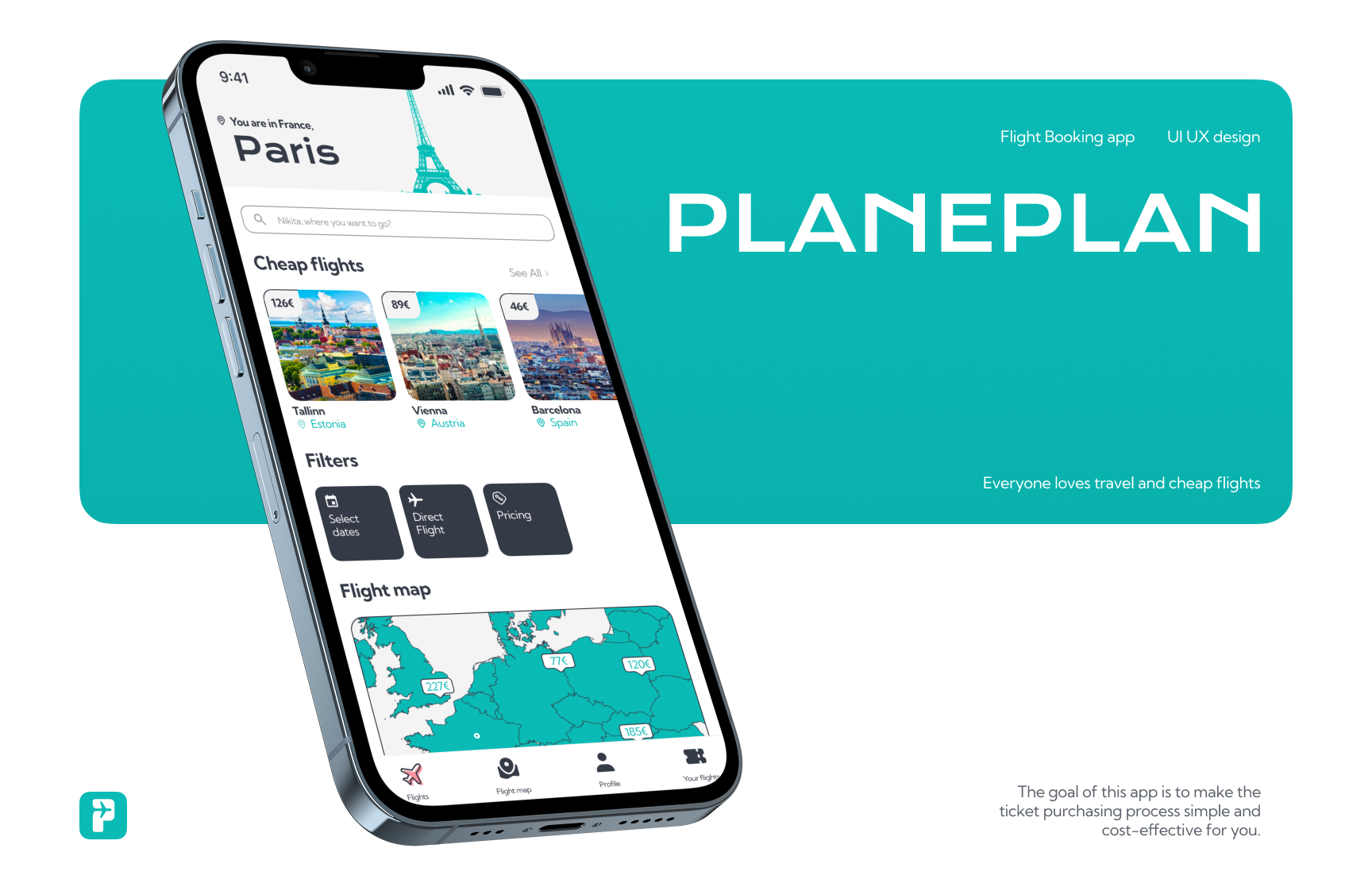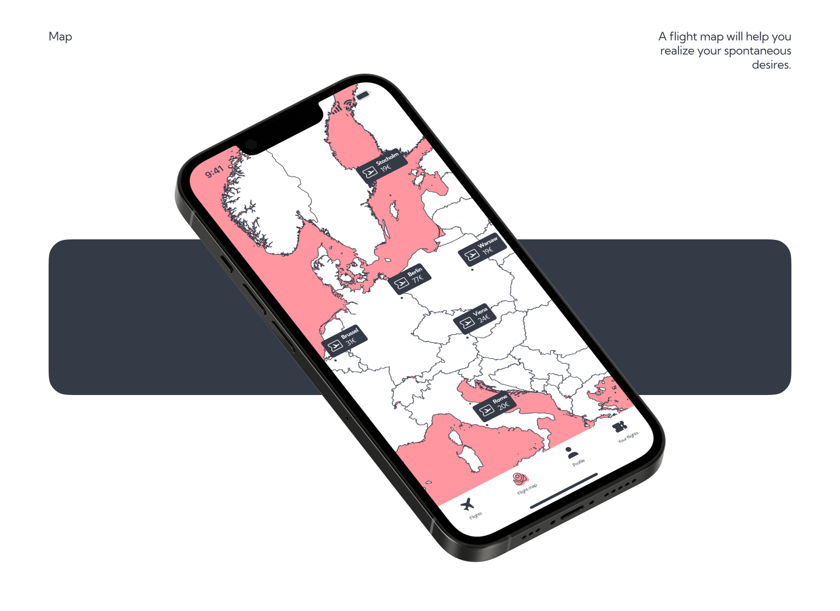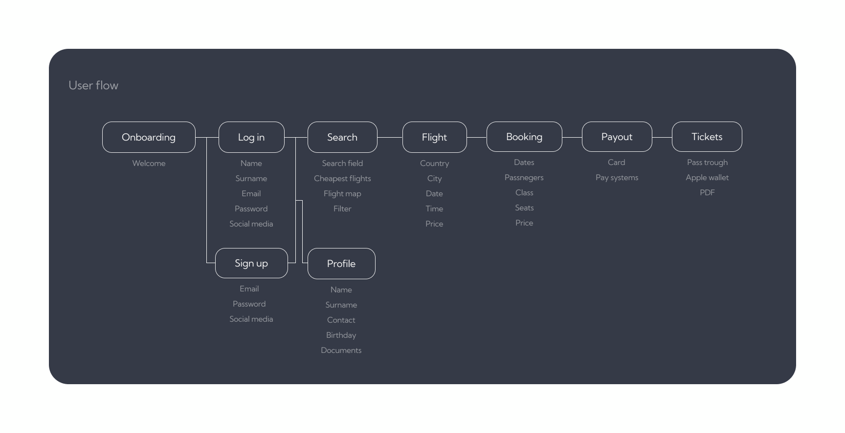 Flight app design whose main goal is to search for cheap tickets. Search through manual input, by map and by offers. This was a long time ago and I don’t even know what the customer did with these later.