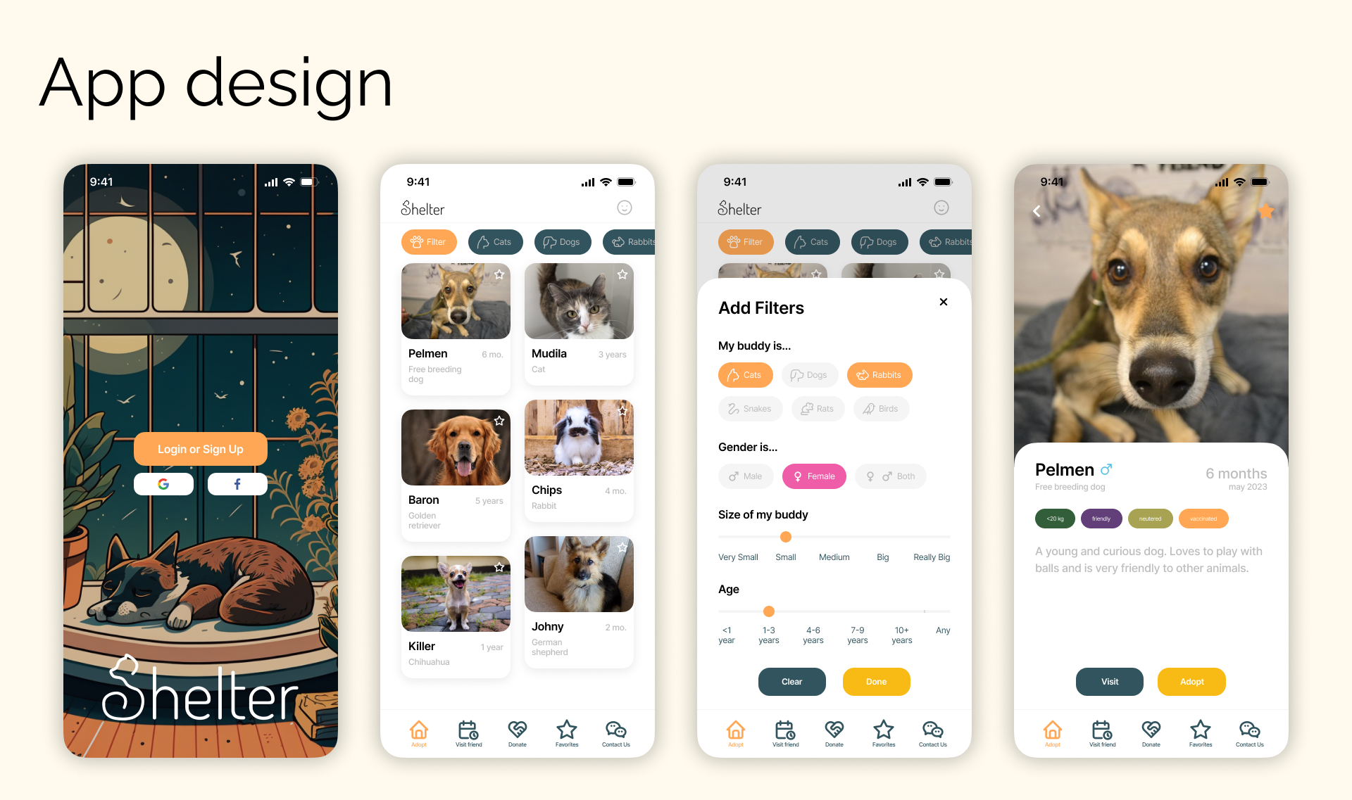 One day I was faced with the task of creating a simple and necessary design for an animal shelter mobile app.